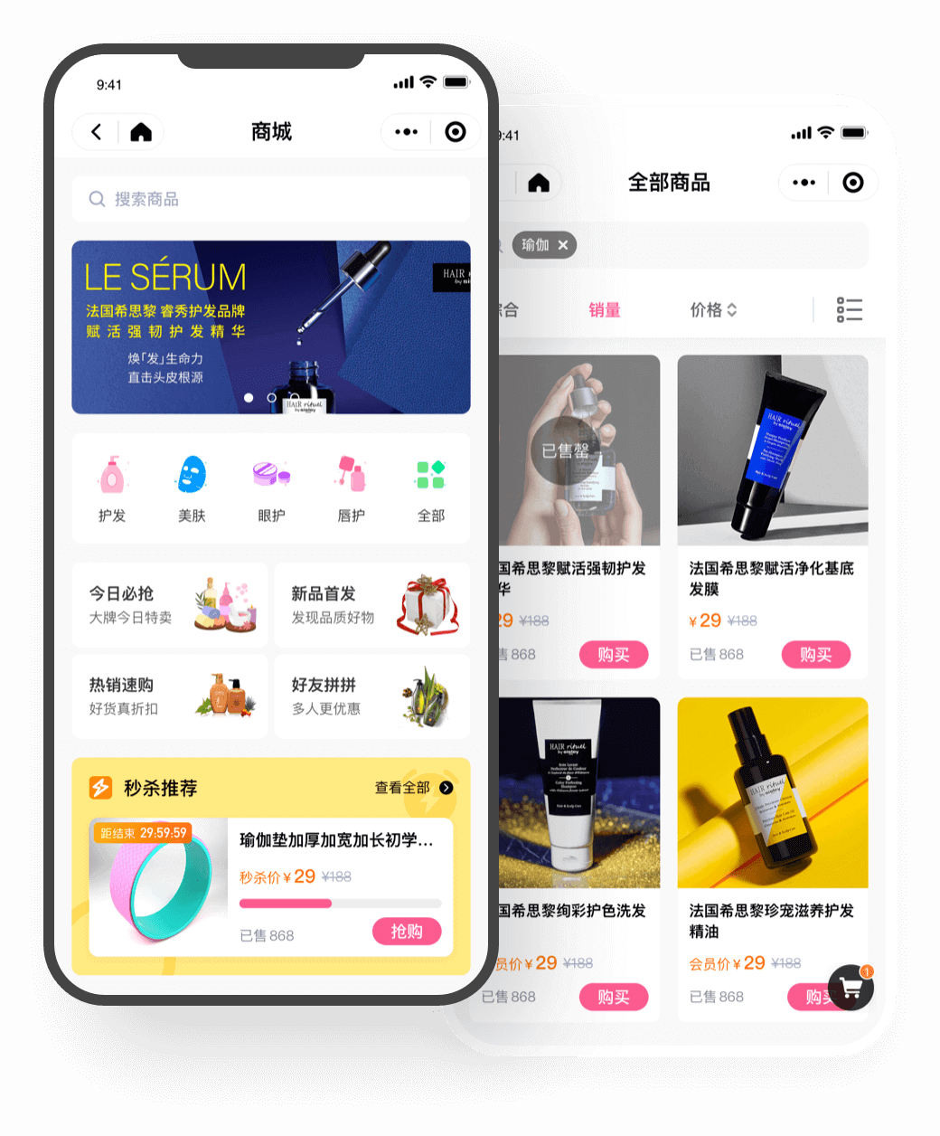 门店可在线销售商品,秒杀、拼团、预售、囤货四大营销插件,轻松打通粉丝变现通道